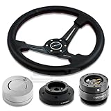 NRG-SRK-101H+200GM+101LS+018R, NRG Innovations 13.78" 350mm 3" Deep Dish Style Black Leather Red Stitch Black Spokes Racing Steering Wheel Combo with 6 Hole Short Hub Adapter with Gen 2.0 Gun Metal Quick Release with Silver Lock Hub Kit SRK-101HNRG Quick Release features many options that conventional ball-locking quick release system do not. It is specially engineered with raised sections to prevent the scratching and stretching of the hub while a self locking feature adds increased safety and functionality. Features racing styled for added style and look. Each unit is made from the highest quality aircraft grade aluminum and is anodized for maximum durability and finish.