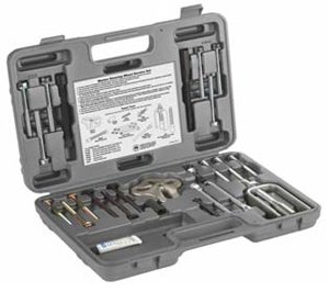 Incluudes a forged puller flange with 5 sets of hardened hex head bolts for 2 or 3 way pulling configurations. Also includes a set of steering wheel puller legs for steering wheels without tapped holes and a steering wheel pivot pin remove.